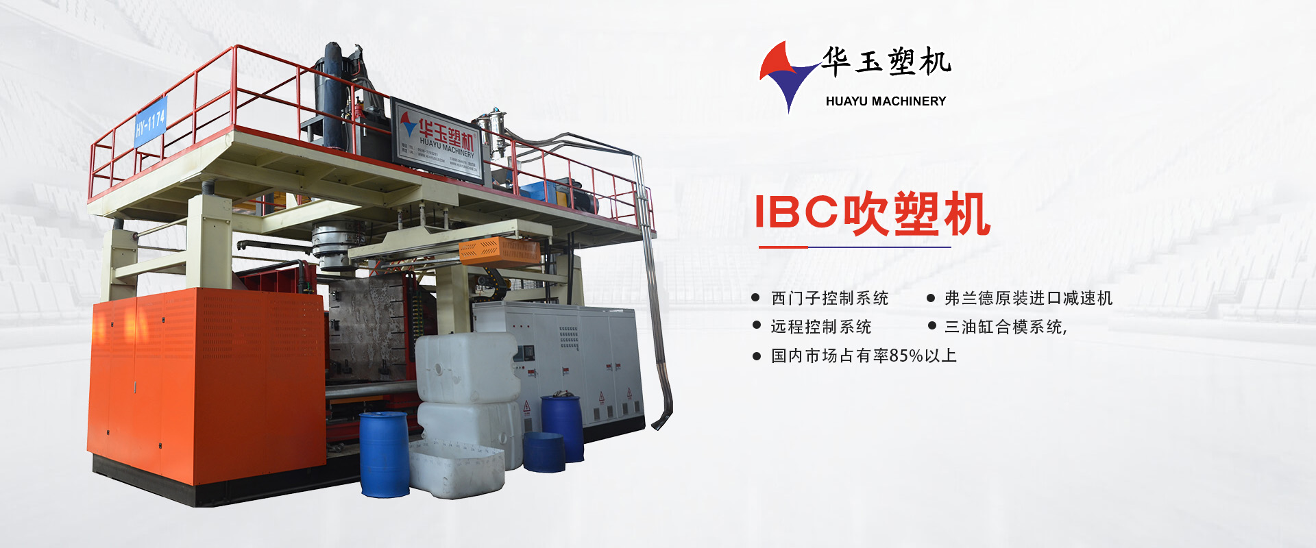 濰坊市華玉塑料機(jī)械有限公司創(chuàng)辦于貳零零貳年,是超大型全自動(dòng)中空吹塑設(shè)備專業(yè)生產(chǎn)廠家。公司融合國(guó)內(nèi)外先進(jìn)技術(shù)和理念,專業(yè)設(shè)計(jì)、生產(chǎn)、銷售一層到十層的大型全自動(dòng)中空成型機(jī)組。我公司生產(chǎn)的各型號(hào)吹塑機(jī)可生產(chǎn)50升到30,000升的各類塑料水桶,噸桶、雙環(huán)桶、水馬、路錐、隔離墻托盤(pán)、桌板、浮筒、皮劃艇、工具箱包等中空制品。優(yōu)良的品質(zhì)、穩(wěn)定的性能、優(yōu)越的性價(jià)比使公司產(chǎn)品不僅暢銷國(guó)內(nèi)市場(chǎng),并出口到亞洲、東南亞、中東、歐洲、北美、南美、非洲等80多個(gè)國(guó)家和地區(qū),深受客戶的好評(píng)...